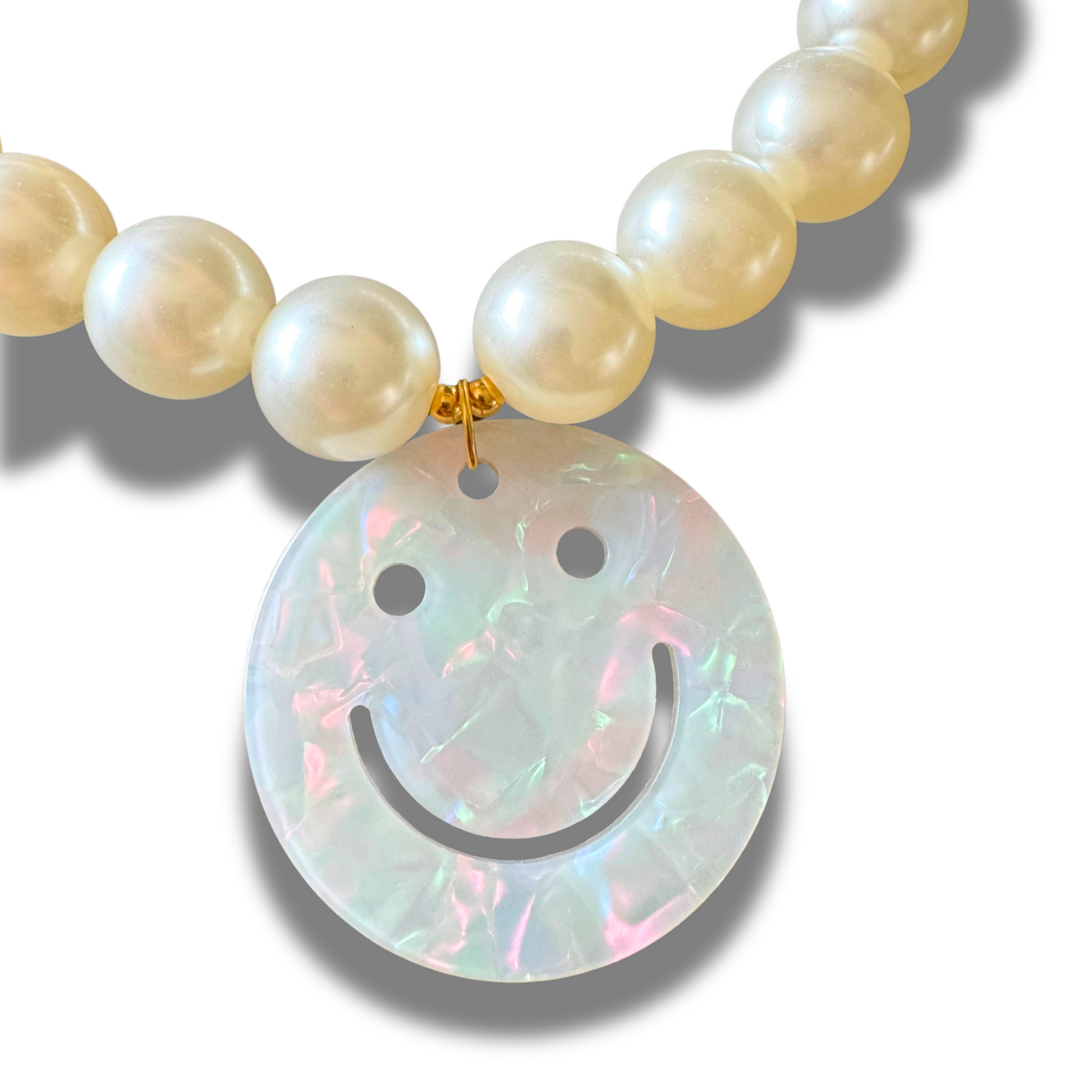 Not Your Grandma’s Pearl Necklace is chunky, bold, and fun. Featuring oversized 18mm faux pearls and a big acrylic smile pendant, it sits close to the neck so it’s always front and centre. Handmade in Canada, this maximalist statement piece is designed to turn heads and add instant personality to any outfit.