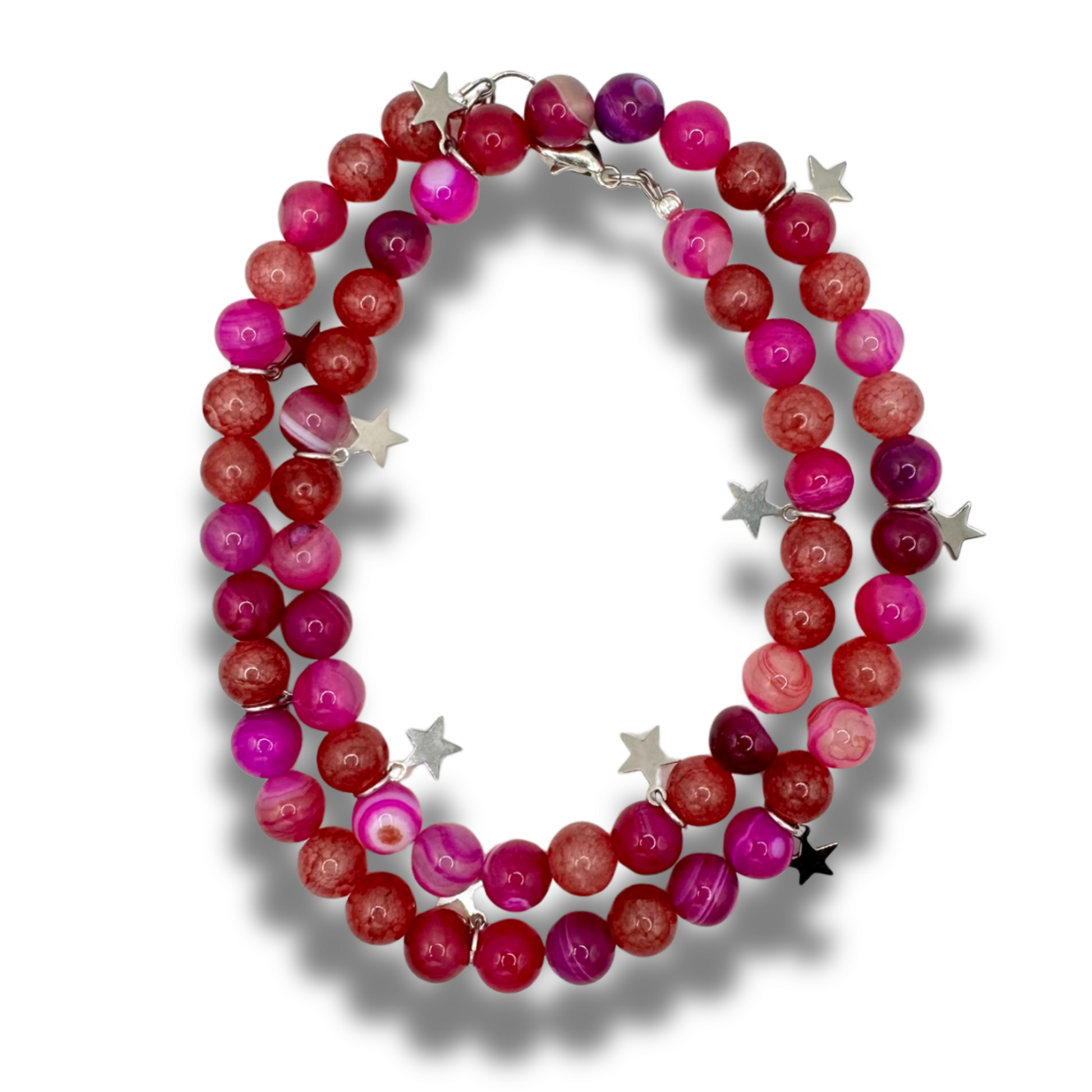 Painted Sky is a handmade long beaded necklace featuring soft marbled beads and tiny star details. Lightweight, dreamy, and perfect for layering or wearing solo.